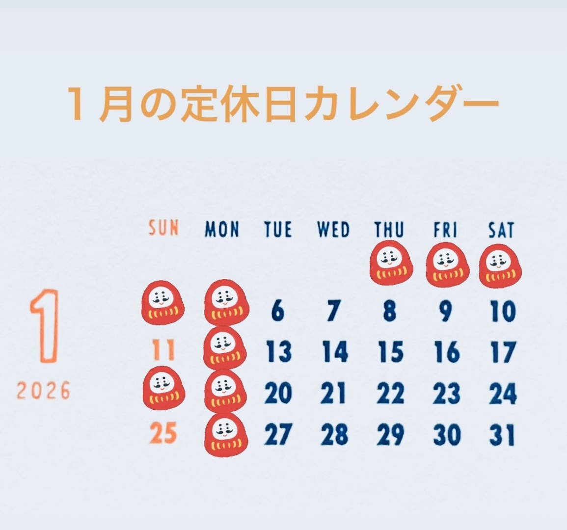 1月の定休日カレンダーです