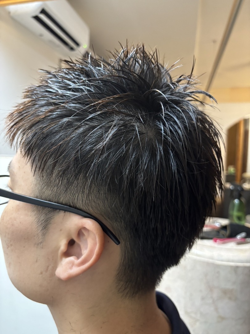 サイドをツーブロックにしバックへグラデーションに刈り上げさせていただき、トップもわかれないで オフの日も自然でいられるように ほどよくスタイリングよう調節しました。お仕事にもプライベートにも◎ですね!
