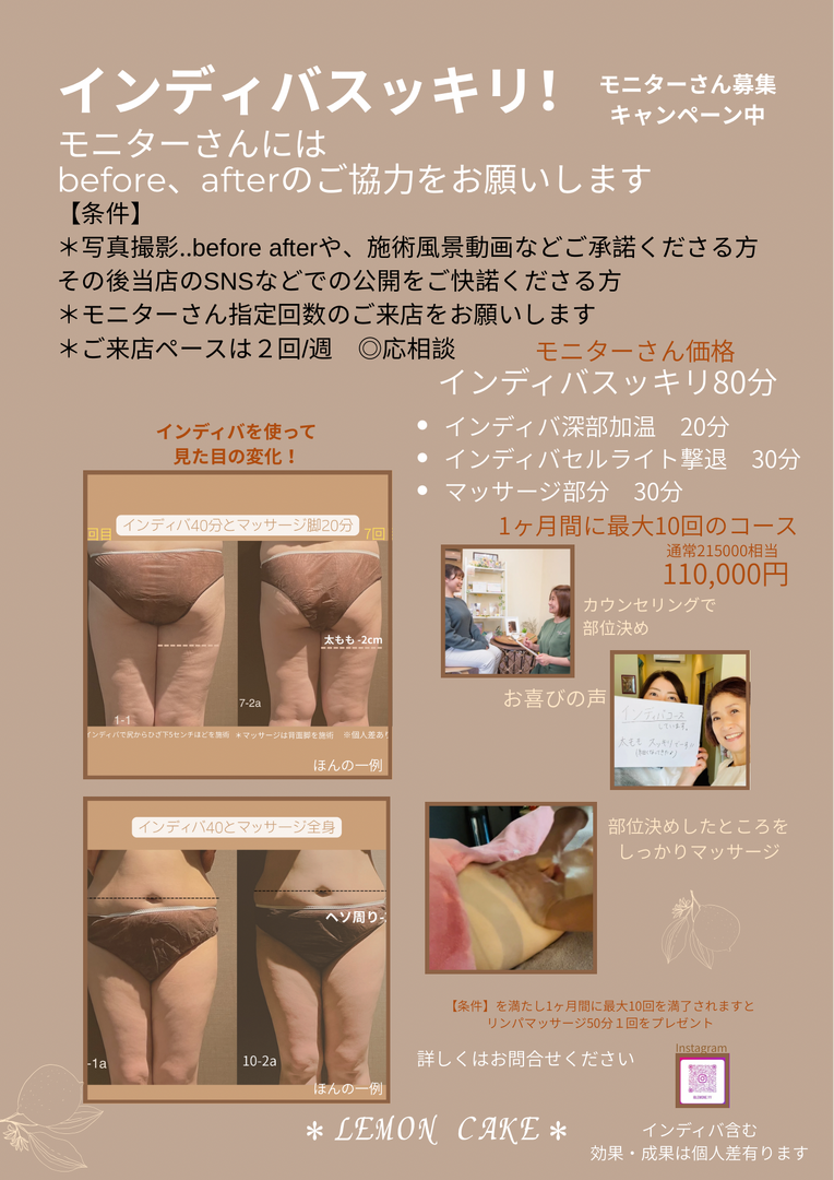 インディバを使った施術の成果、効果を最善にする為 2回/週 必須!