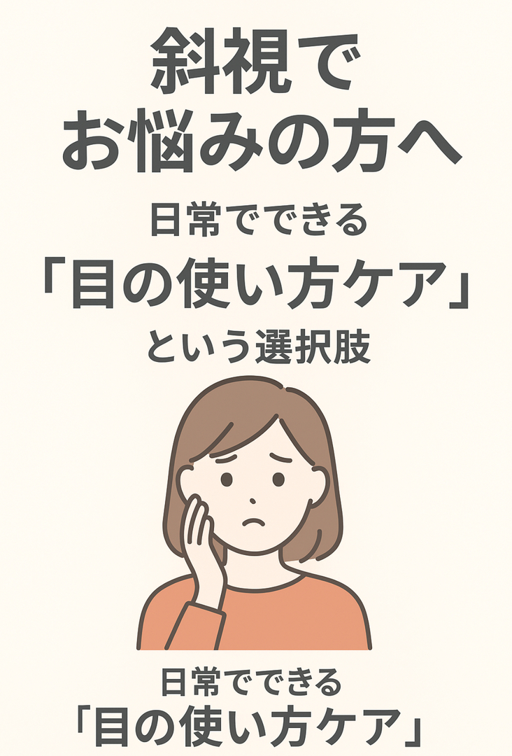 斜視でお悩みの方へ日常でできる “目の使い方ケア” という選択肢斜視で悩まれている方から、「日常生活の中で目の負担を軽くする方法はありますか...