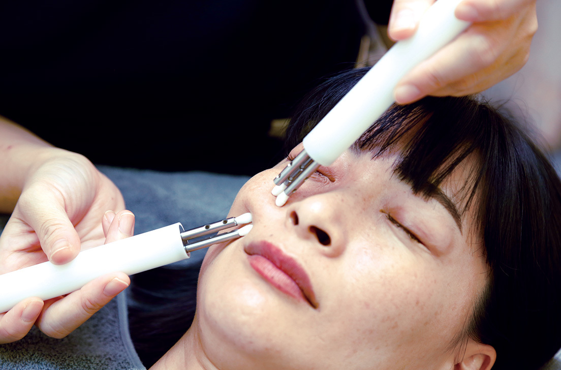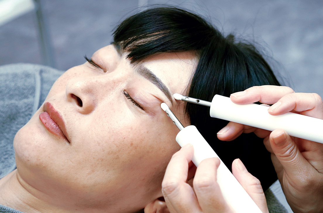 クレンジングでメイクを落とした後、1秒間に25,000回のミクロ振動をする機械で、お肌の余分な汚れを落として、有効成分の浸透を高めます。