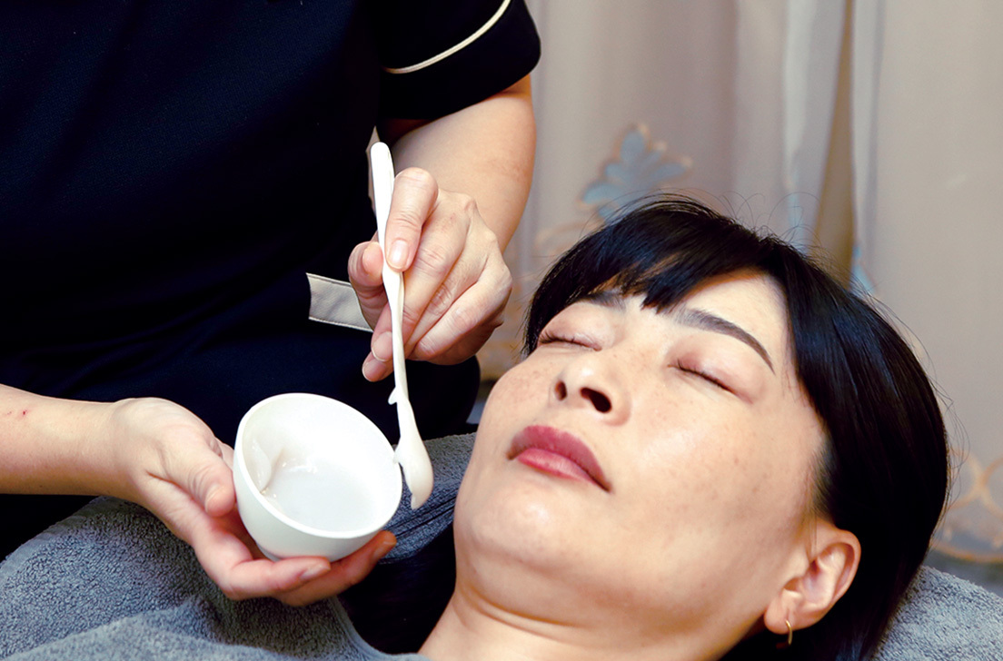 最後は炭酸パックでお肌を鎮静し整えます。炭酸の効果で血流が良くなり、肌のターンオーバーやトーンアップをサポートします。施術後はアフターティーでくつろいで♪