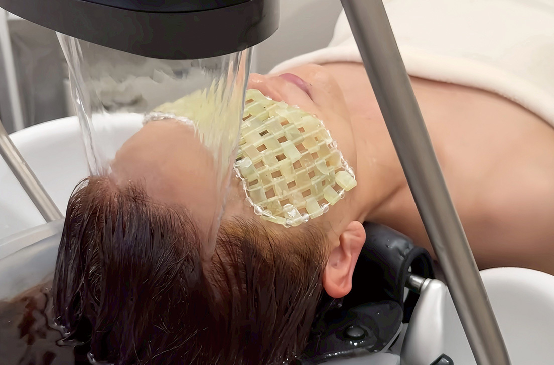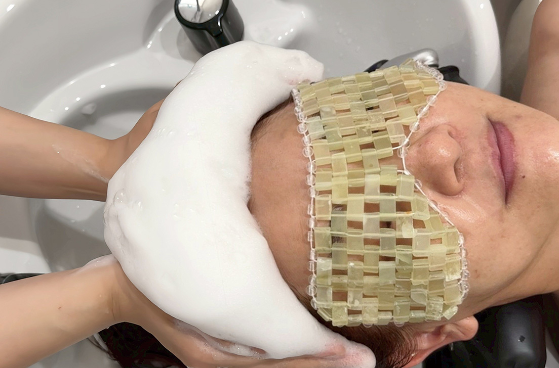 頭浸浴で頭皮の血行を促進した後、たっぷりの泡で洗い上げることで、普段のケアでは落とせない汚れや残留物をリセット。健康的でツヤのある髪へと導きます。