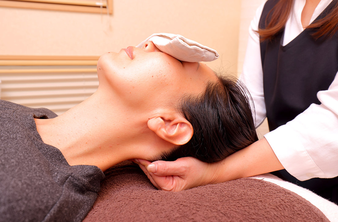 体が温まった後は、首〜肩〜頭を中心にドライヘッド施術。