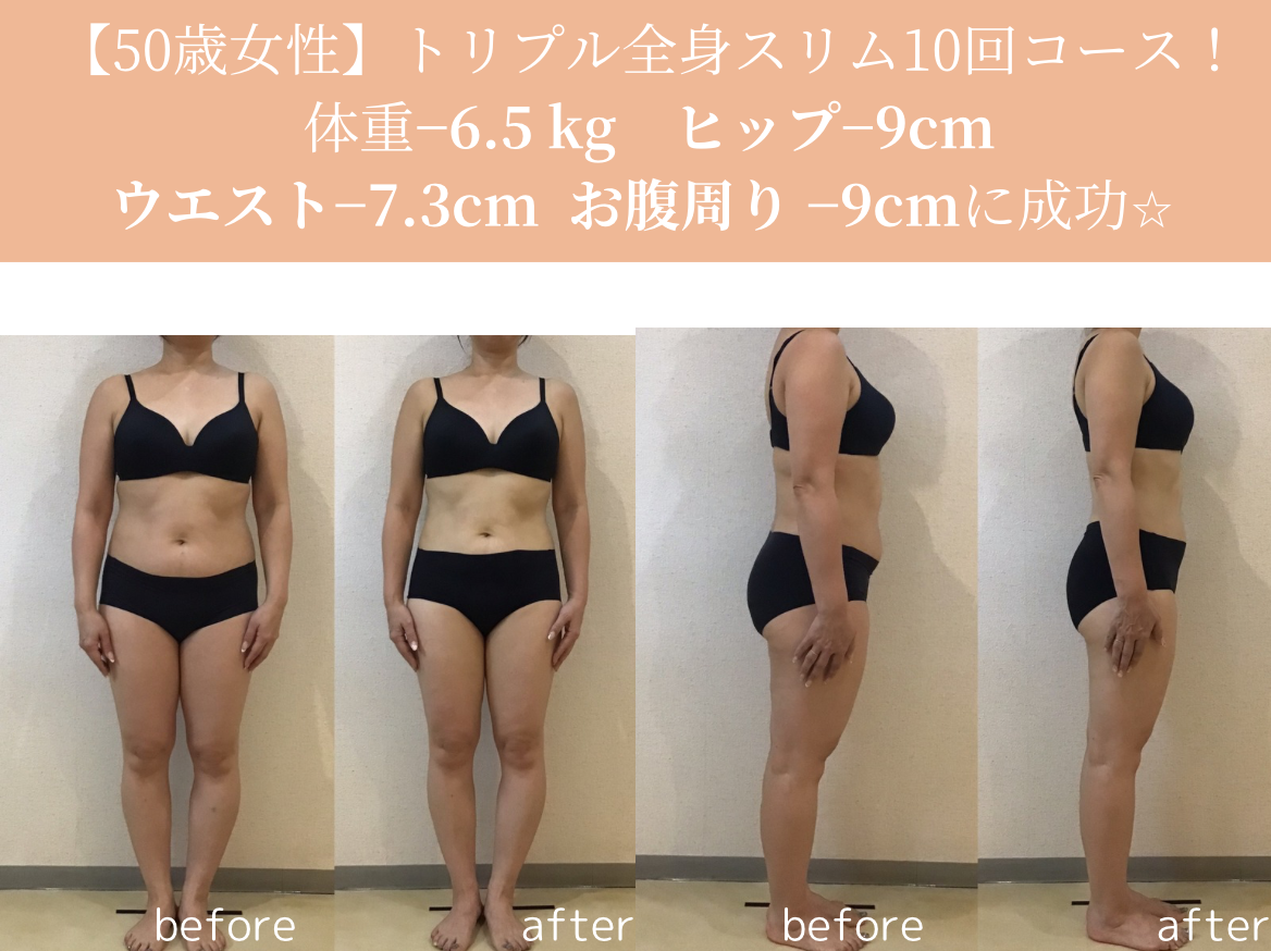 ☆トリプル全身スリム☆50歳1ヶ月半−6、5kgビフォーアフター