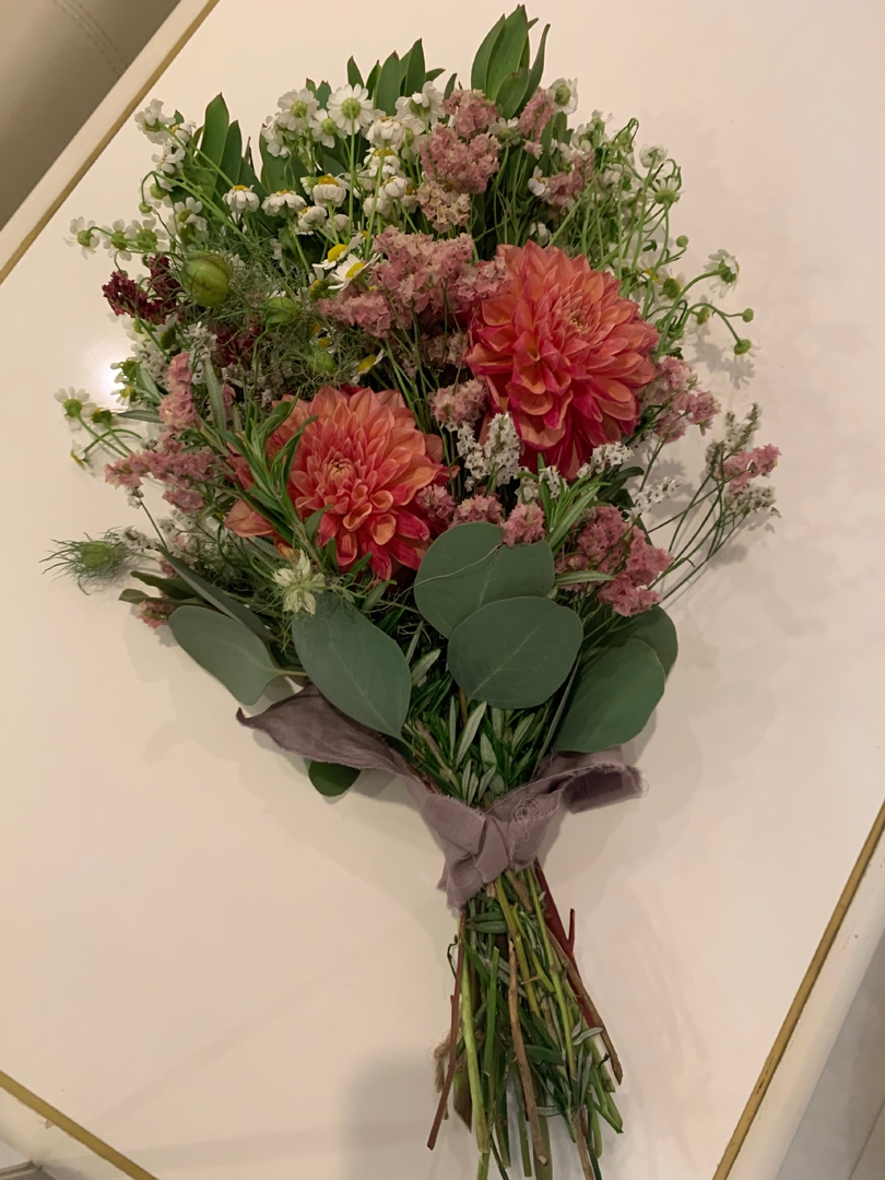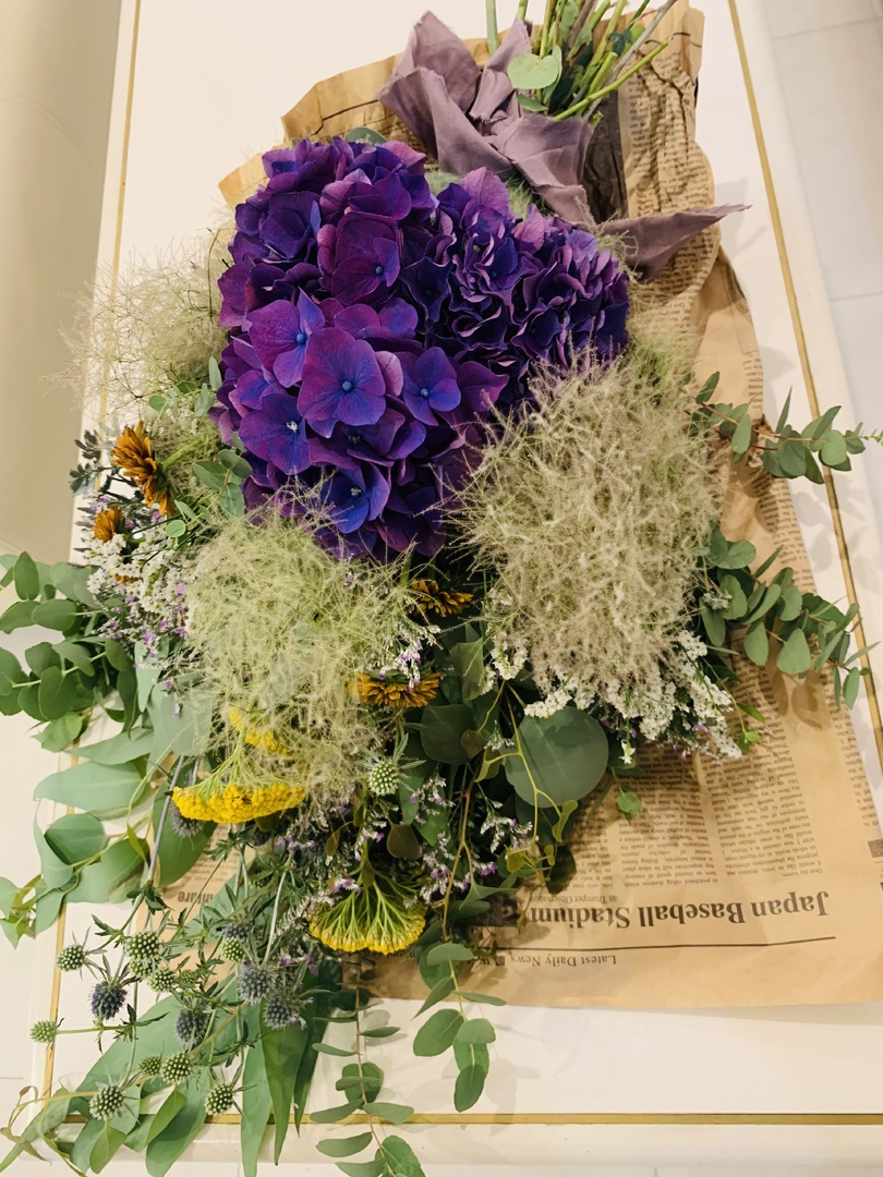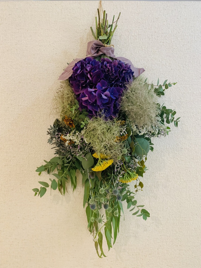 お花好きのお客様がサロン用にドライフラワーのアレンジメントを作って下さいました♪