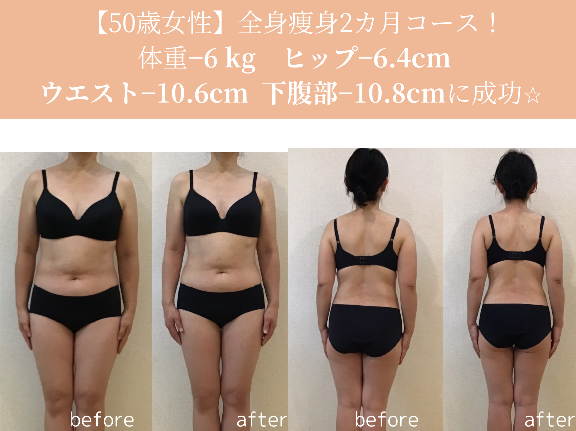 本日は2カ月短期コースで痩せられた50歳アラフィフのお客様のご紹介です。