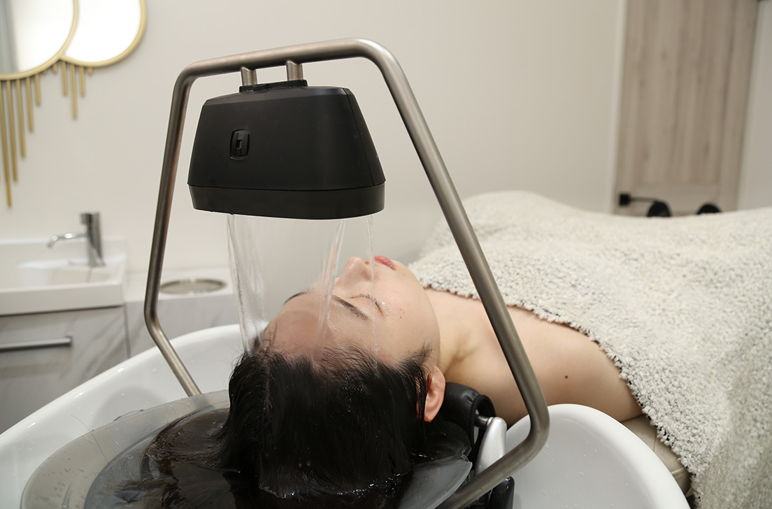 頭皮マッサージ → 頭浸浴 → シャンプー → トリートメント付き