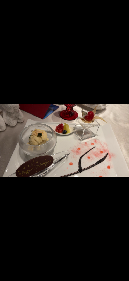 ベイコート一泊で、お誕生日のお祝いをしていただきました。孫ちゃんと娘と一緒に過ごせて楽しかった♡すごい贅沢な中華ディナーと日本食の朝食本当豪華なお誕生日プレゼントありがとうございました。一生忘れない思い出が出来ました。感謝です。2時間かけてのコースディナー!!デザートは