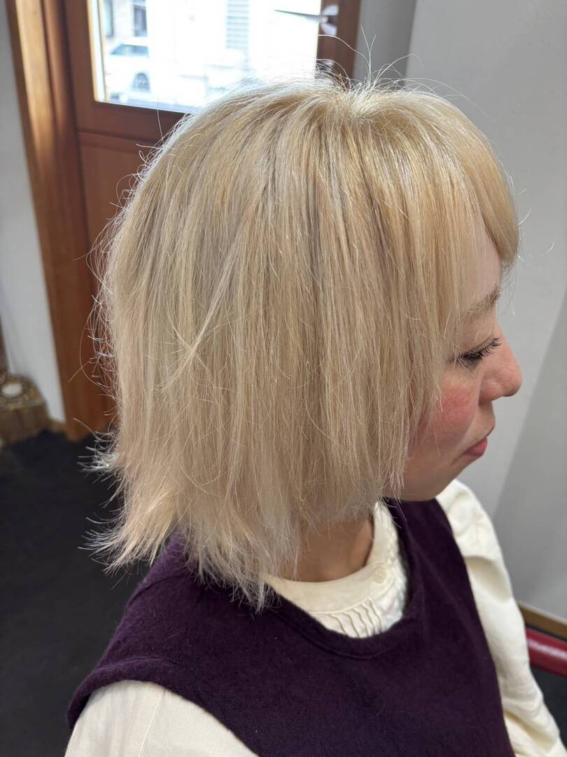 先日のお客様、ブリーチカラーで 柔らかい仕上がりに とても かわいい方なので バッチリお似合いでした。