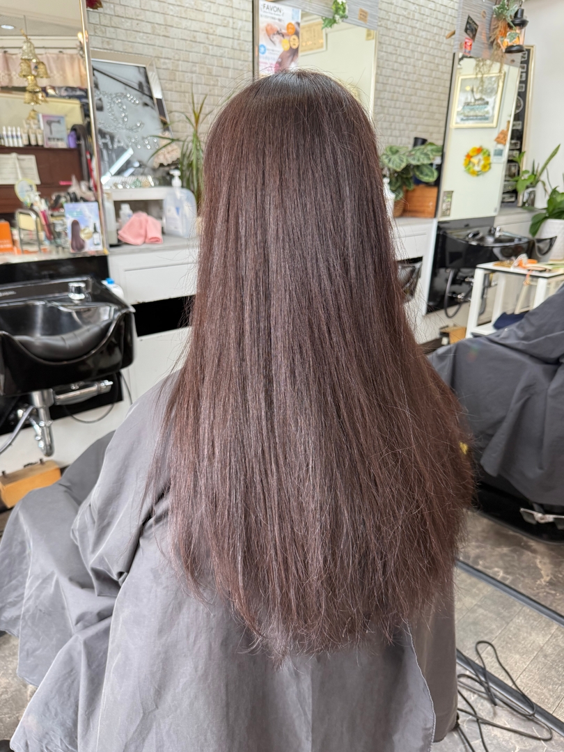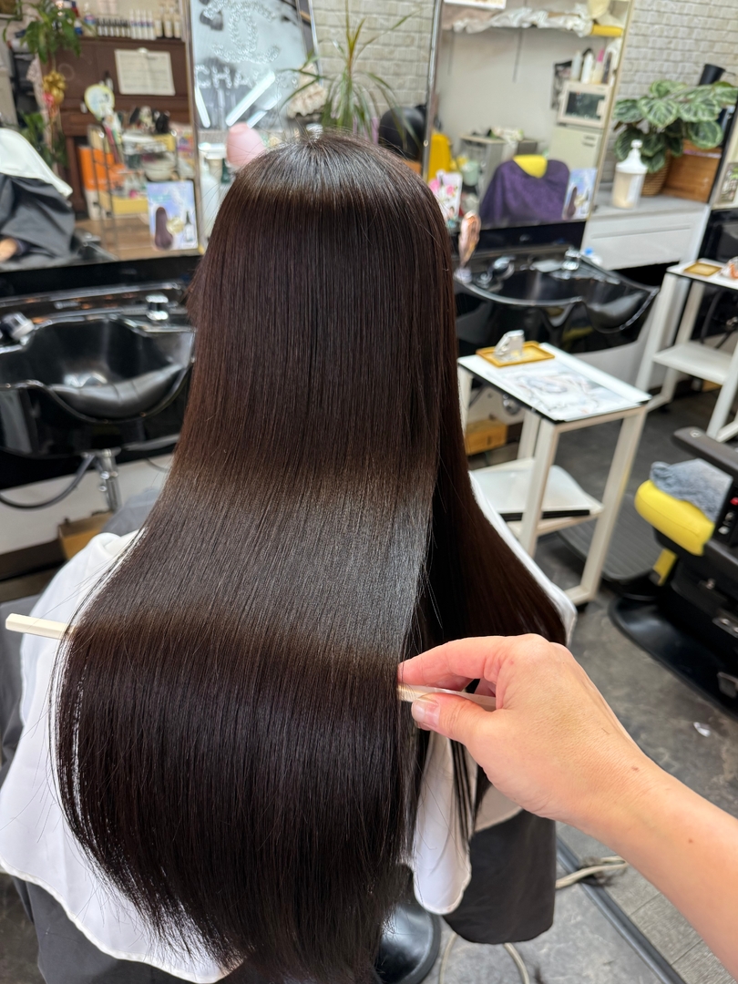 当店オリジナルの 髪質改善ストレート《シルクストレート》 を選択し、じっくりとお時間をかけて施術させていただきました。