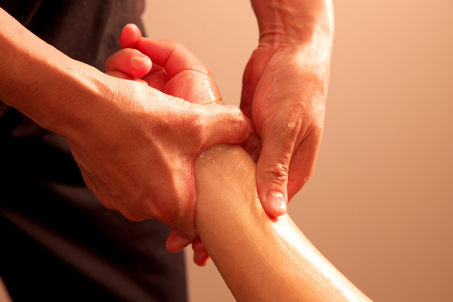 オイルを使って肘から下、腕 手のひらをマッサージします。
