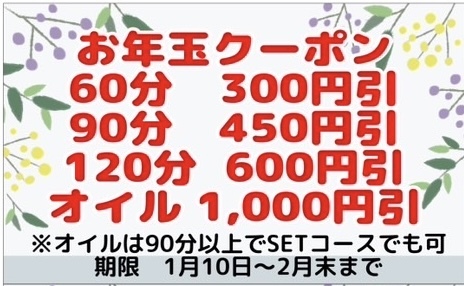 期間中何度でもご利用可能な「お年玉クーポン」をお渡ししております。