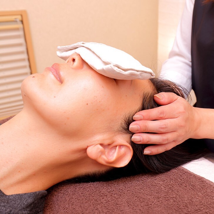 専用の手技で、足裏・首・肩・頭・顔へとゆっくり優しい圧をかけていく「ドライヘッドスパ」です。