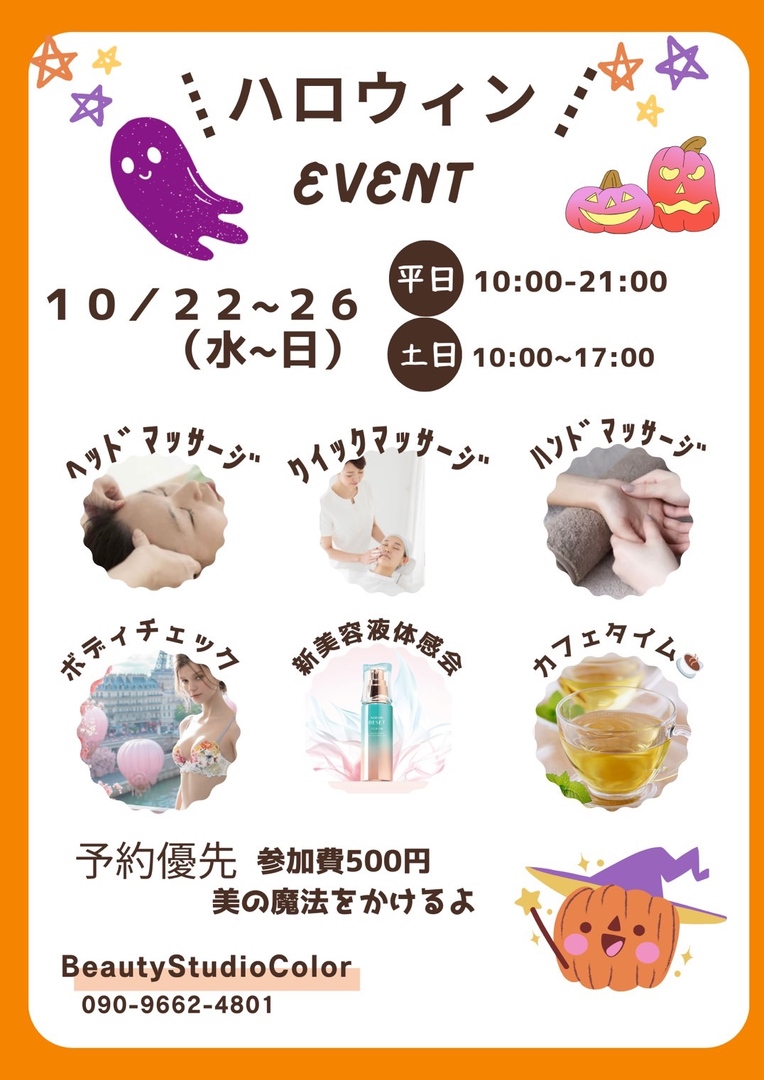 ハロウィンイベント開催のお知らせ|岡崎市 Beauty Studio Color