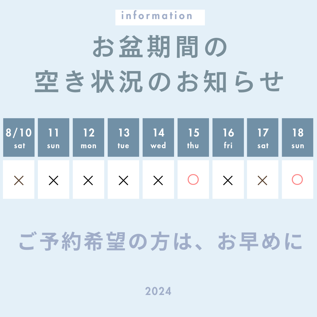 お盆期間の営業時間お知らせ
