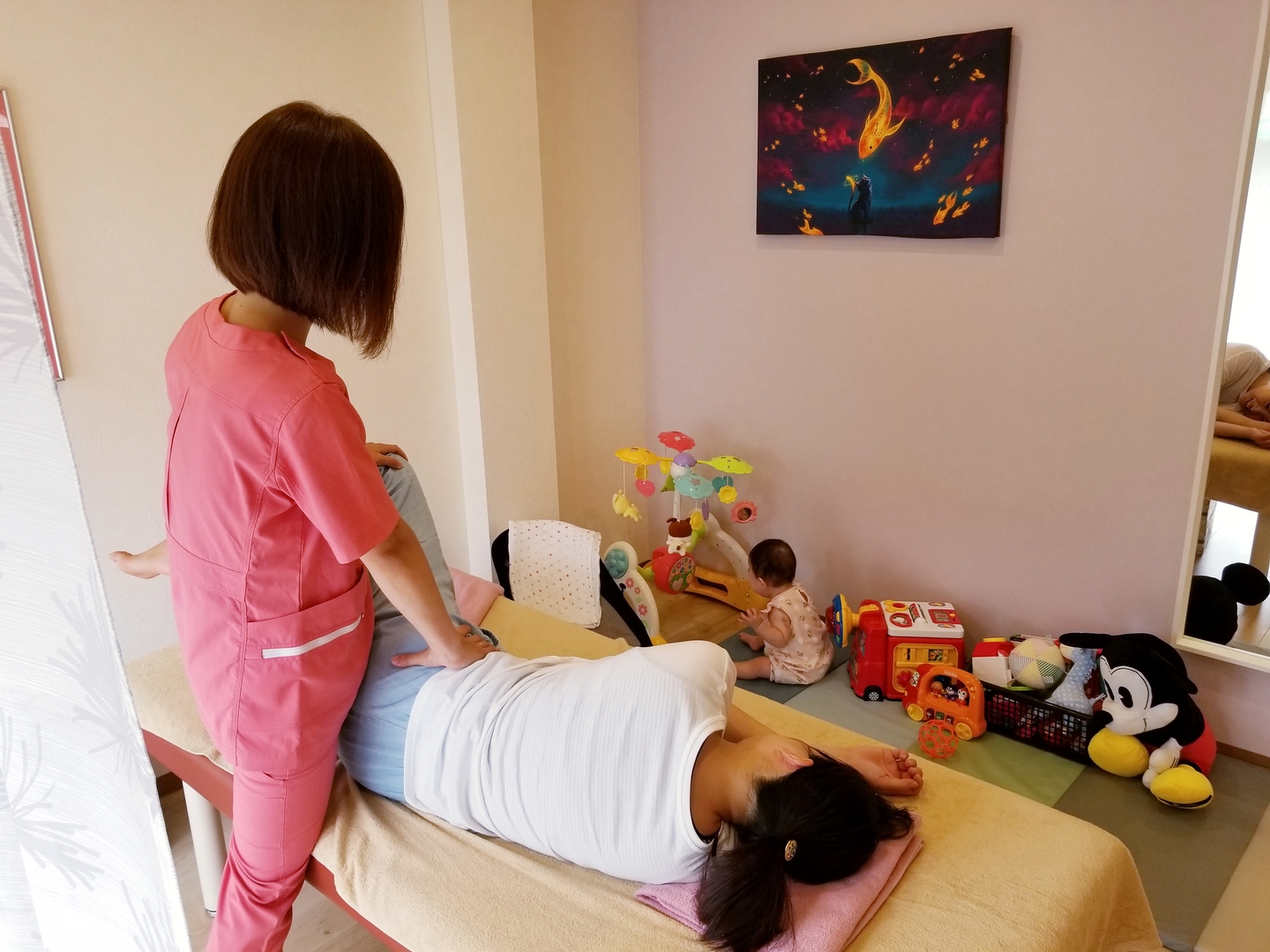 産後骨盤矯正は骨盤だけでなく頭から足の先までしっかり診させていただきます。