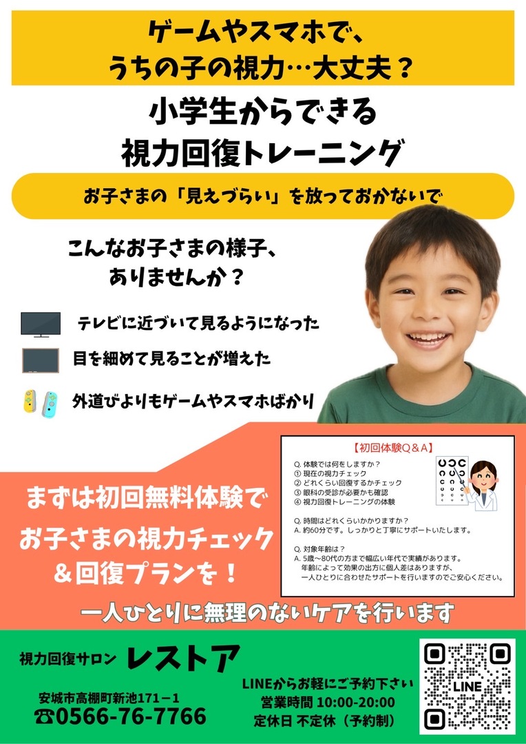 🌟視力回復プロジェクト🌟「目がよくなるって、楽しい!」ゲームや勉強で目が疲れていませんか?最近「黒板が見づらい」「テレビに近づきがち」な...