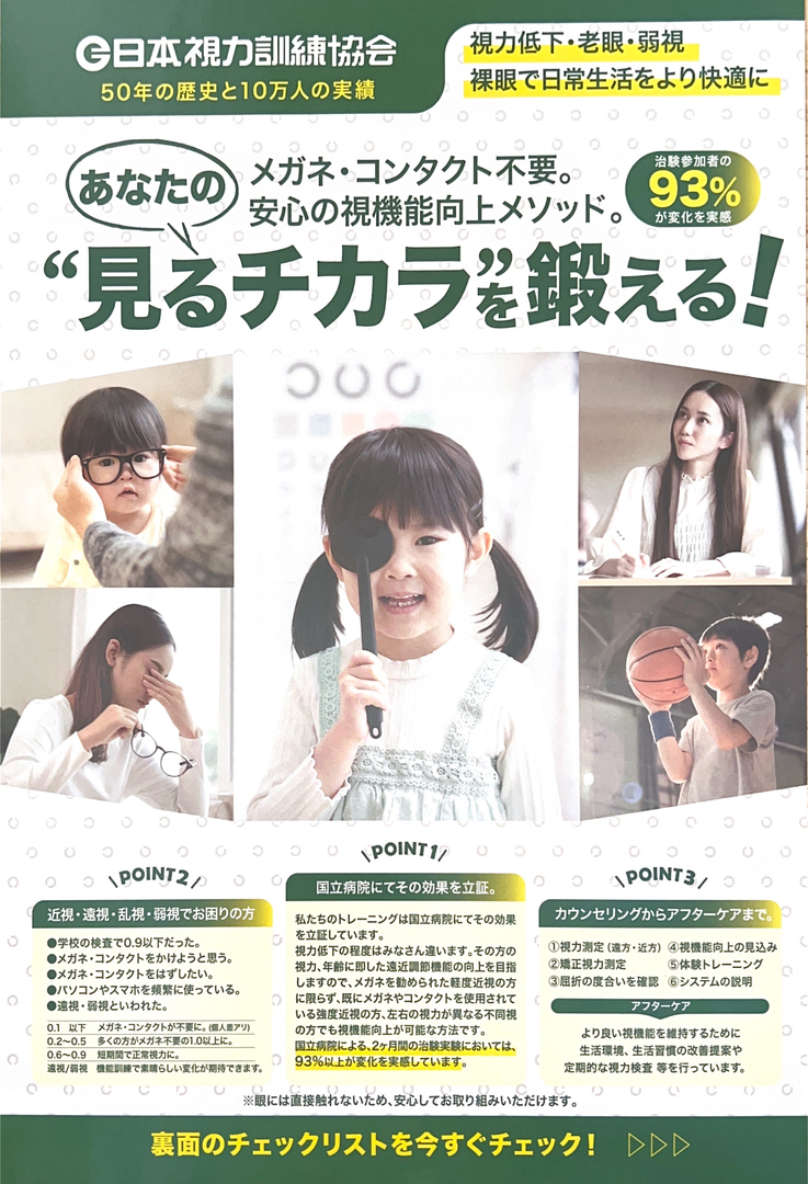 お子さんの目の健康をサポートする 視力回復トレーニング を行っています。