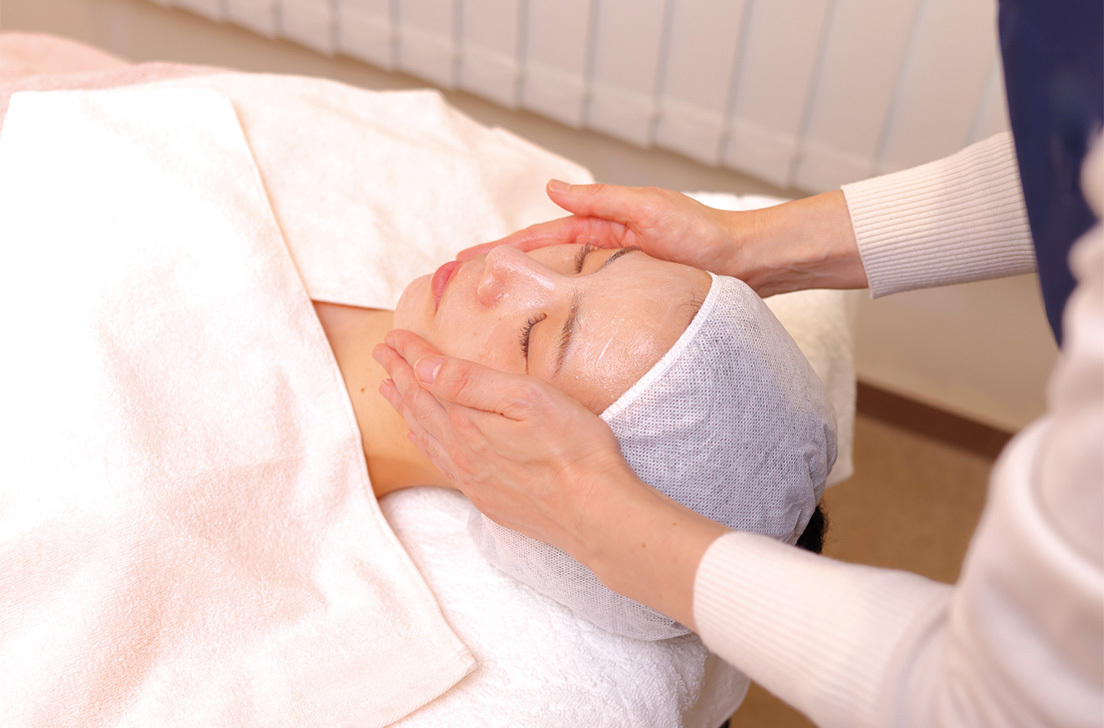 仕上げはフェイシャルケアで肌を整え、より美しい仕上がりに。
