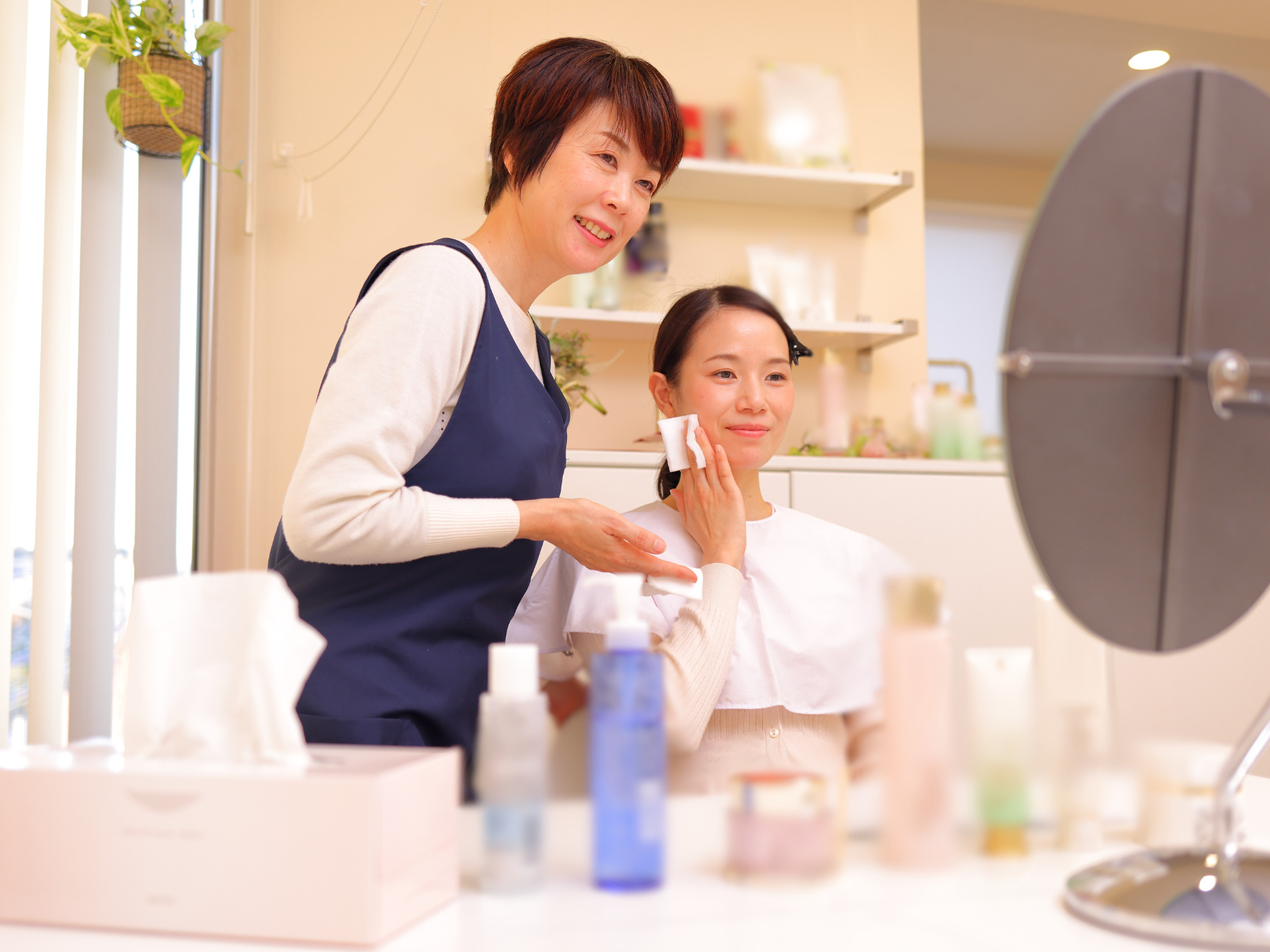 正しいスキンケア方法を学びながら、土台となる肌づくりを行います。
